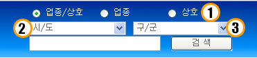 1. 업종/상호, 전화번호로 검색이 가능하며 ①번의 선택에 따라 각 방식에 해당하는 결과물을 얻으실 수 있습니다